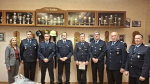 Als letzter und auch als sehr wichtiger punkt dieses Abends wurde Klaus Küsel aus seiner Zeit als Ortsbrandmeister geehrt. Die Ehrung führte sein Stellvertreter Florian für die gesamte Ortswehr durch. Klaus Küsel ist bereits seit 2002 im Ortskommando als Stellv. Ortsbrandmeister und am 2008 als Ortsbrandmeister. Insgesamt waren es stolze 24 Jahre in der Führung der Ortswehr Schülern. Diese lange Zeit macht ihm so lange keiner nach. Klaus hat die Ortswehr mit seinem unermüdlichen Tatendran weiter voran gebracht. Er hat neue Regelungen umgesetzt und auch immer zur Einsatzbereitschaft aufgerufen. Er wird als Führungskraft mit seiner Erfahrung im Ortskommando fehlen. Er sagte aber das man ihn immer Fragen kann wenn seine Hilfe gebraucht wird.